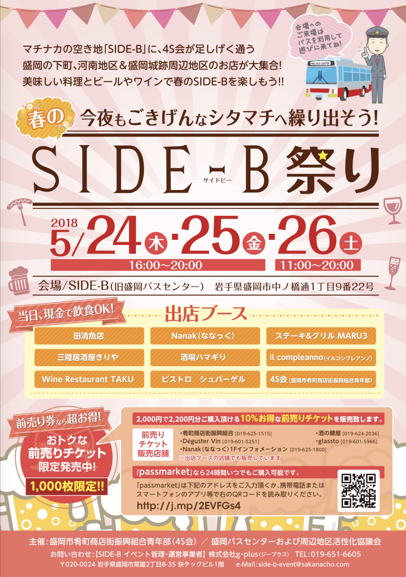 今回の「春のSIDE-B祭り」では、私たちがよく利用する河南地区や盛岡城趾公園周辺地域の飲食店さんにご協力をいただき、美味しいフードやドリンクのブースがたくさん並びます〜。私たち4S会のブースでは、前回同様、石窯の焼きたてピザを出すことにしてます。そしてまた「なんで平野さんがピザ屋してるの?」って言われるんだろうな〜と(笑)。