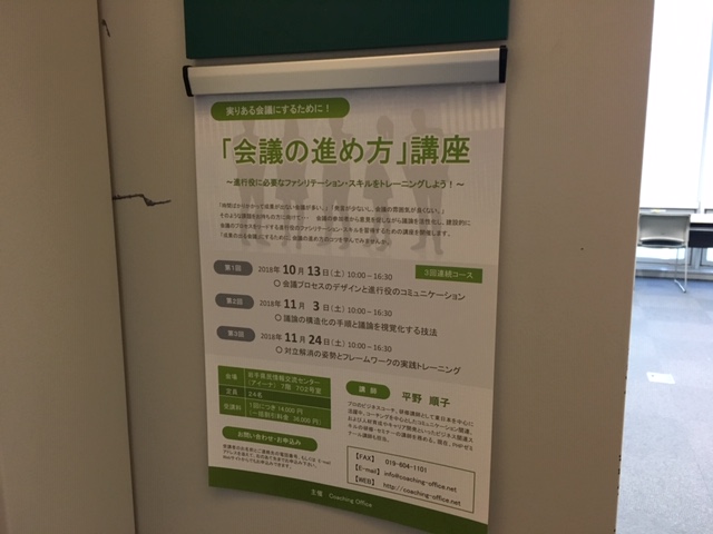 以前から、組織の悩みや課題をお伺いすると、会議が建設的ではないとか、意見が出なくて困っているというのはよく聞きます。たしかに、日本人は・・・というと一般化しすぎかもですが、みんなで意見を出し合って新しいものを生み出すとか、多少は対立や摩擦があっても意見を言ってより良いものを作っていく、みたいなのにやや慣れていないのかなと思います。昨年度より、ジョブカフェいわてさんの主催で、「働き方改革」に取り組んでいる企業さんを対象に「会議の進め方」の研修をさせていただいていますが、これもまた同じような課題がご依頼の発端・・・。