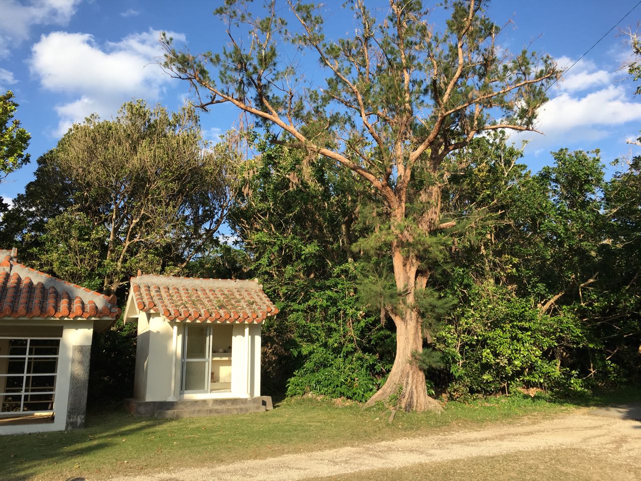 島の南西部に少し集落がありますが、島の北東部は神の領域。・・・というか、何もない(笑)。あるのは、道と、沖縄風な林と、綺麗な海、そして、時々神聖な場所。
