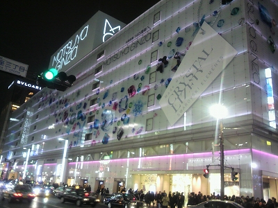有名なミキモト前のクリスマスツリーは、昨年は青色のLEDでしたが、今年は赤でした~。