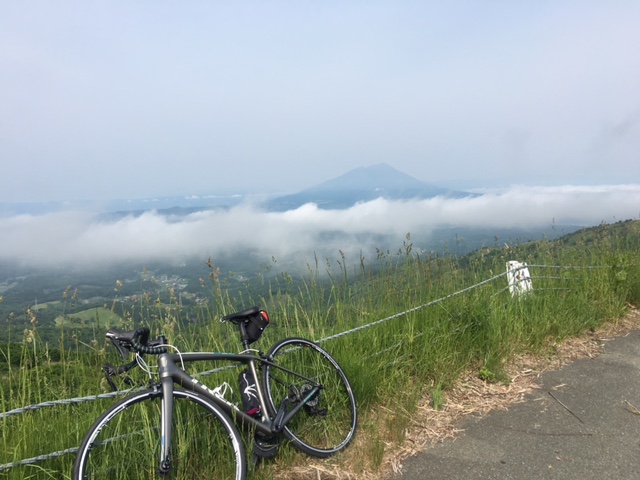 山の麓の「ゆぴあす」の近くに車を止め、自転車を装備して集合場所のローソンにしゅ~っと。そこにチームメンバーが5~6人集まってくる。時間は朝の7時前。