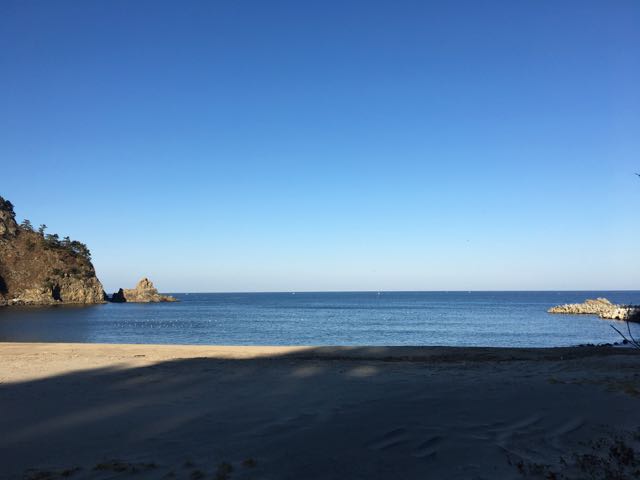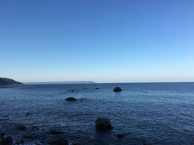 岩泉を抜け、もうひと山?越えるとようやく普代村~。やっぱり2時間30分かかりましたね・・・。まあそれでも、早めに出たから少し余裕があったので、講演会場に行く前に海辺まで寄り道〜。