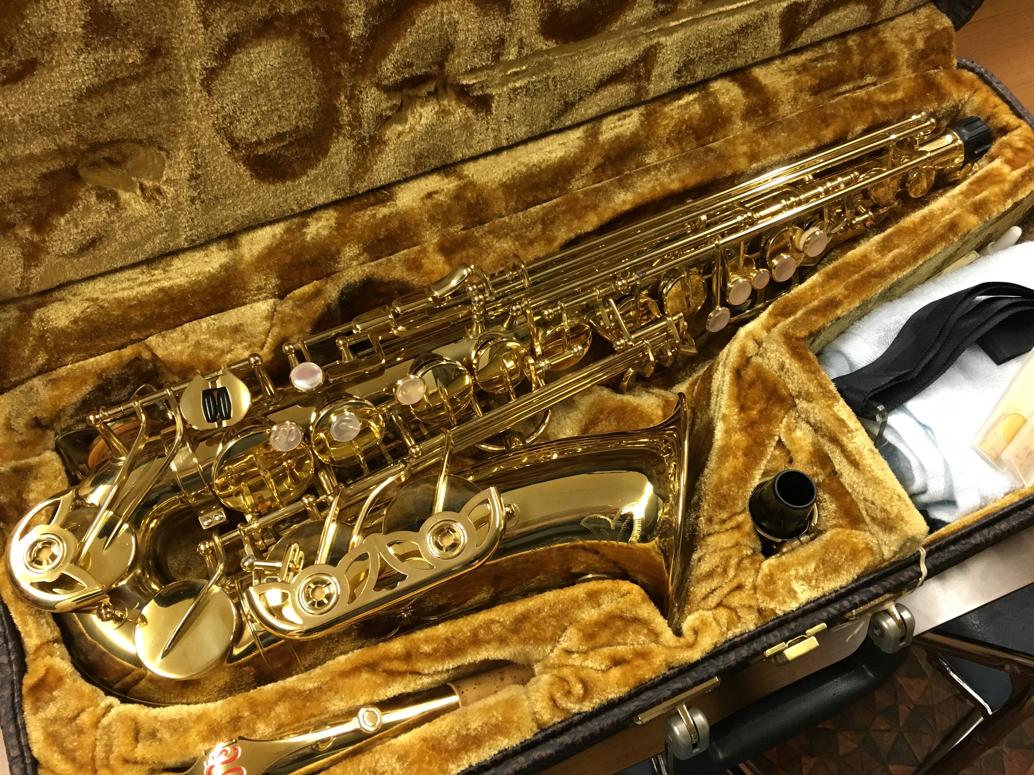 ところがです、メンバーと練習している最中に、「かなり古くて生きてるかわからないけど、奥にバリトンサックスがあるんだよね~」なんて話に。肴町のらっぱ隊を始めた頃に、とある高校さんからお古の楽器をいただいていて、その中にバリトンサックスがあるというのです。実は、私は高校時代に吹奏楽部でバリトンサックスを吹いていて、アルトの経験より、バリトンの経験のほうが長い・・・いや、濃いのです。というか、アルトサックス所持歴はありますが、経験はないに等しいですね(笑)。その辺の経緯は、そのうち機会があったら書きますか。
