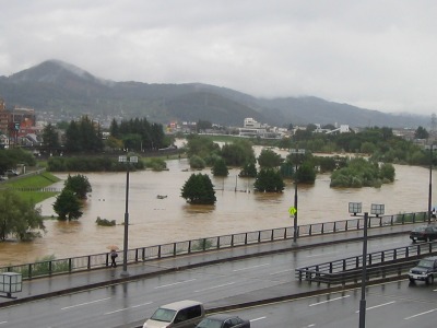 北上川の水位は朝から高めでしたが、昼にはもっと増え、夕方にはさらに増え、かなりギョッとするような状態になっています。駅の西口では、避難している方々もいらっしゃるみたいですし、北上川沿線に住むものとしては、結構心配だったりします。おっと、外ではサイレンが鳴っていますね・・・。大丈夫でしょうか・・・。