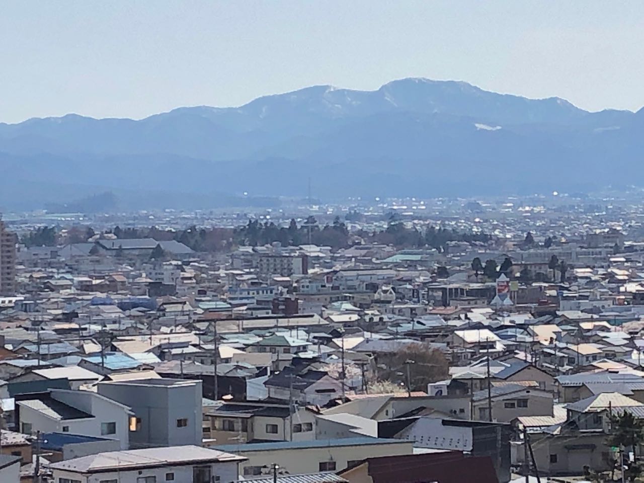 飯盛山から見える街並みと鶴ヶ城(見えるかな〜)
