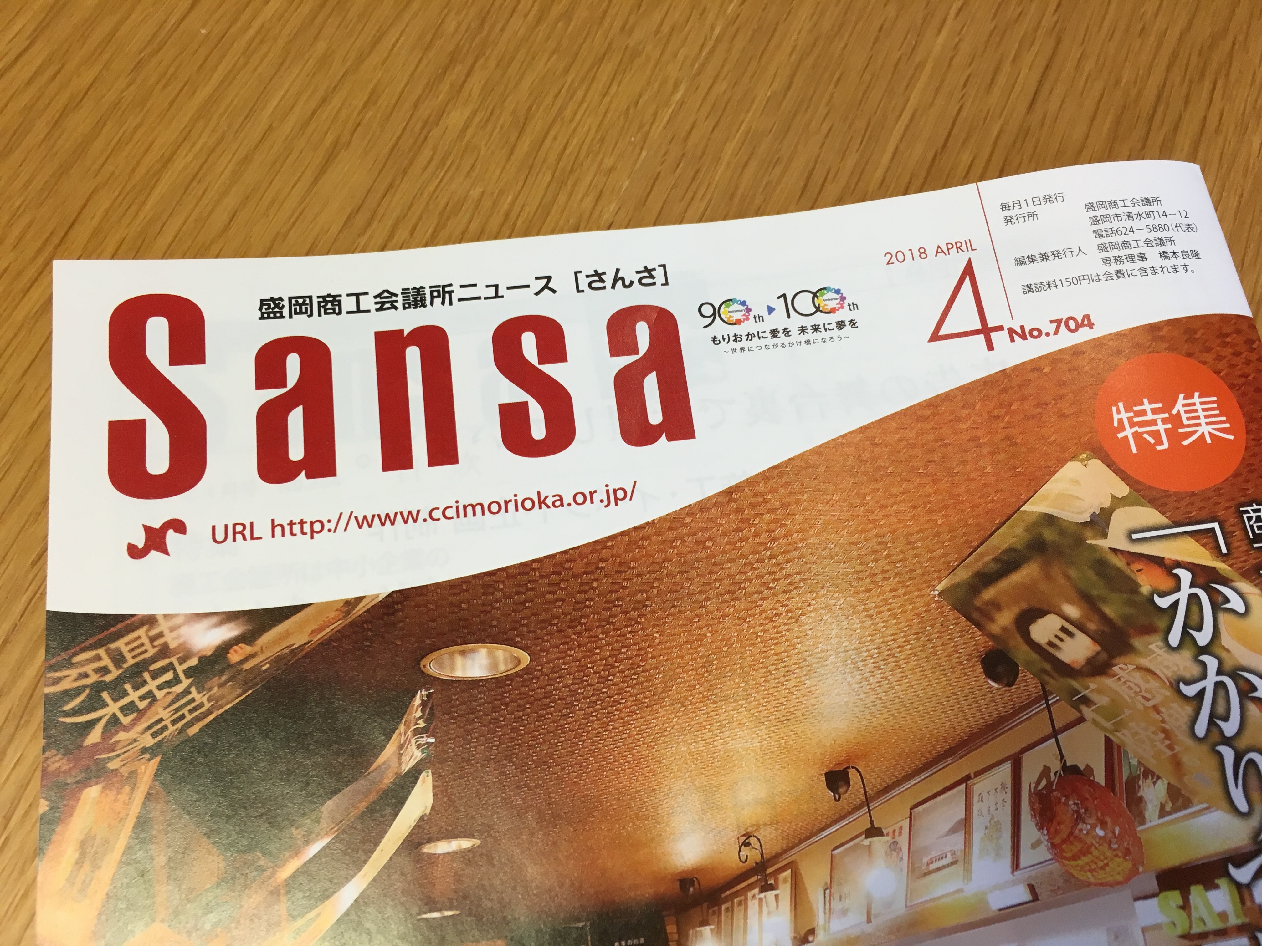 そう言えばって感じの話になるのですが、4月1日発刊の盛岡商工会議所会報の「SANSA」4月号に私のインタビュー記事が載ってます〜。私が東京に行っている最中に届いて私自身もゆっくり見れていませんでしたが、いろいろな方から「載ってたね〜」「わかりやすい記事だったよ〜」なんてお声を掛けていただきました。校正にもやや手間を掛けたので、そう言っていただけてよかったです。
