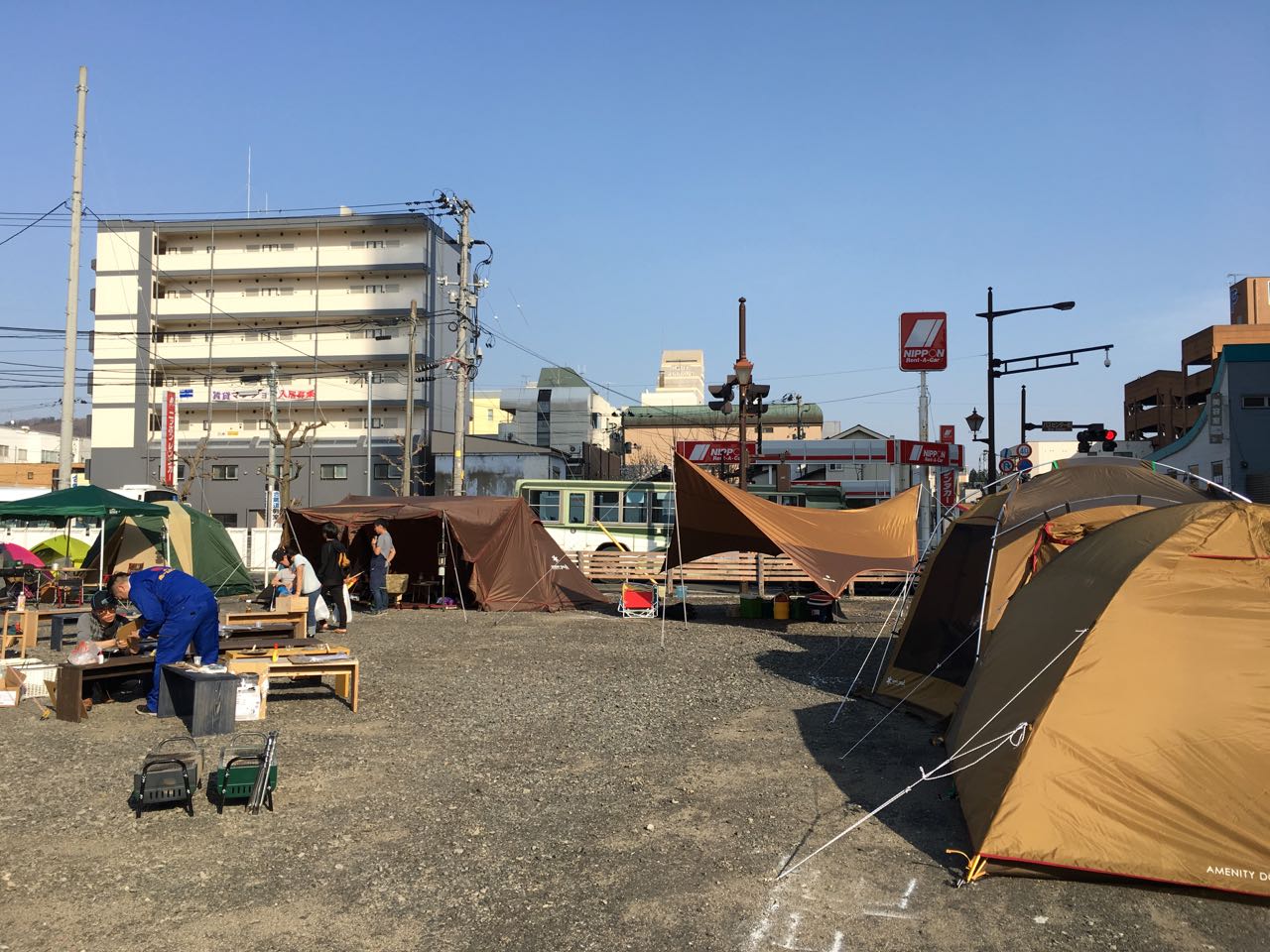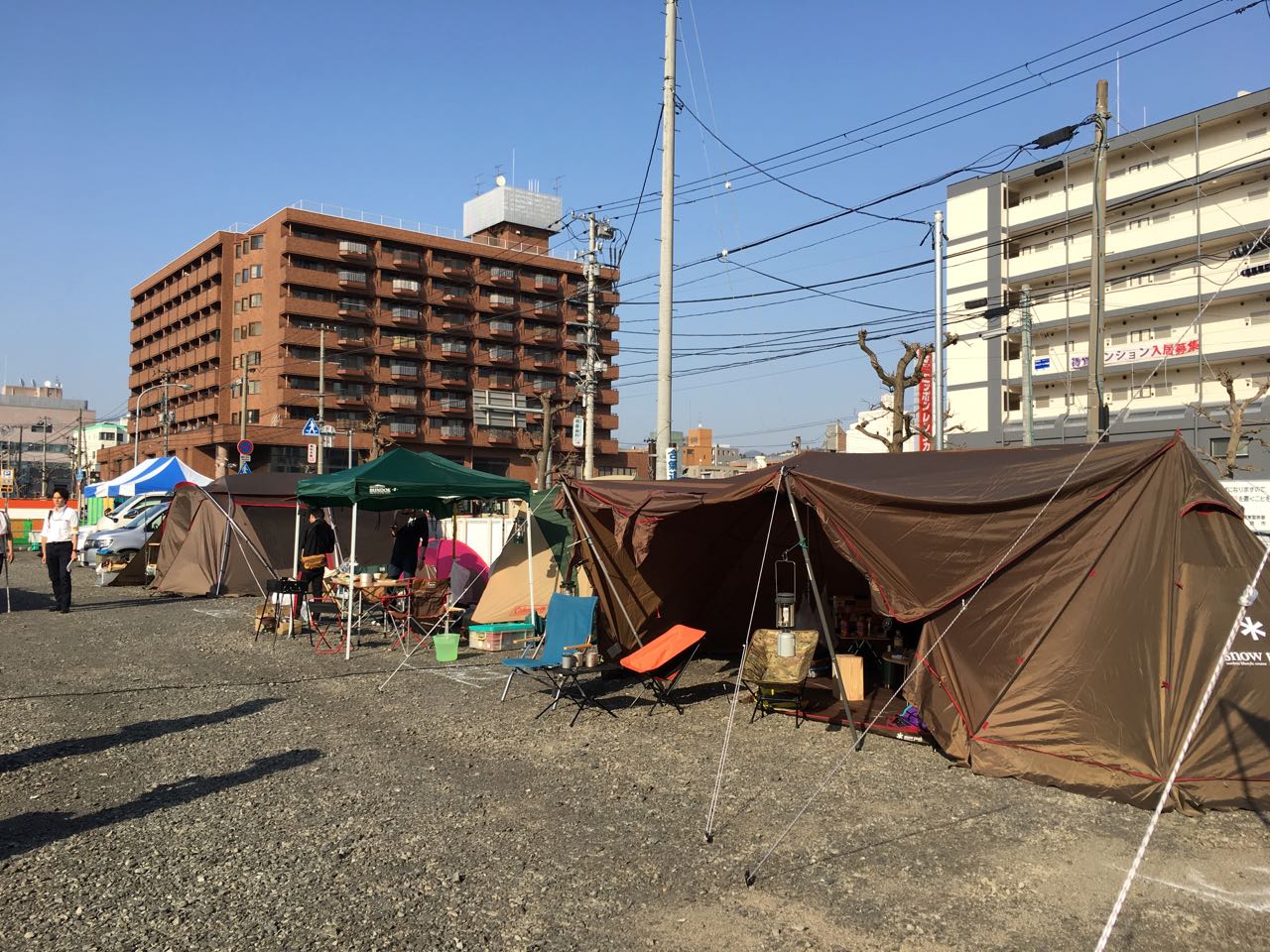 そんなミスマッチ感が満点で、さらに、来年以降、バスセンターが立ってしまったらもう体験できないという希少価値。私は普通の(自然の中での)キャンプをほとんどしたことがないので、公園なんかでのBBQの延長線上みたいな感じで、ミスマッチ感の実感は弱いですが・・・。こういうのを本当の意味での「シュール」というのかなと思ったりとか。