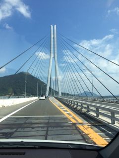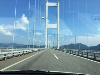 残る手段は・・・レンタカー!ホテルのフロントの方に聞くと、しまなみ海道は島々が繋がっていますので、その分橋が小さく通行止めになりにくいんだとか。ま、小さい橋っても、大きかったけどね〜〜。 まあよし、じゃあレンタカー借りてしまなみ海道を抜けて、岡山まで行けば新幹線に乗れるかも、と。こんなところで前半にレンタカーでしまなみ海道を走った経験が活きるとは~。
