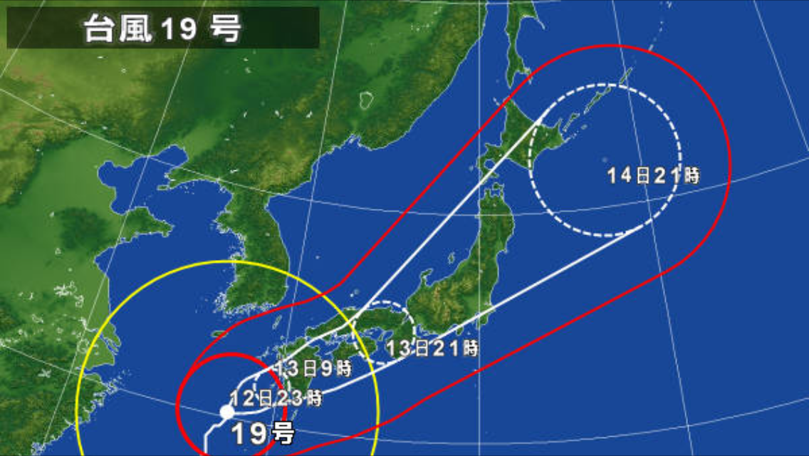 日曜の午後は、こんな悠長に温泉を楽しんでいるその頃、実は南の方から台風が・・・。日本列島の上を縦断して行ったあの台風19号です。もちろん、台風が近づいているのは知っていましたが、せっかくの機会だからと、もし台風が来たらそのときはそのときと温泉を満喫していた私たちでした。もっと雨が降るかと思って覚悟していたら、日曜の午後はほとんど雨は降らず、もしや、意外と大丈夫なのでは?なんて希望的観測もあったりして。