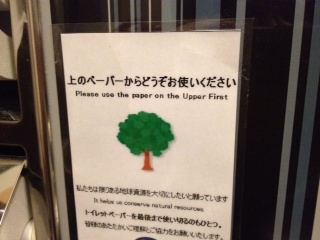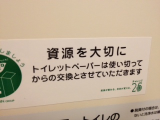 サービスを提供する立場としての気持ちは痛いほどわかるのですが、なんだか違和感が・・・。下の段にはまだ封を切っていないペーパーがセットしているので、あえて書かなくても上から使うのでは?それでもぜひ新しいほうから使いたいという人が稀にいたとしても、その方には意志があるでしょうから仕方がないのでは・・・。