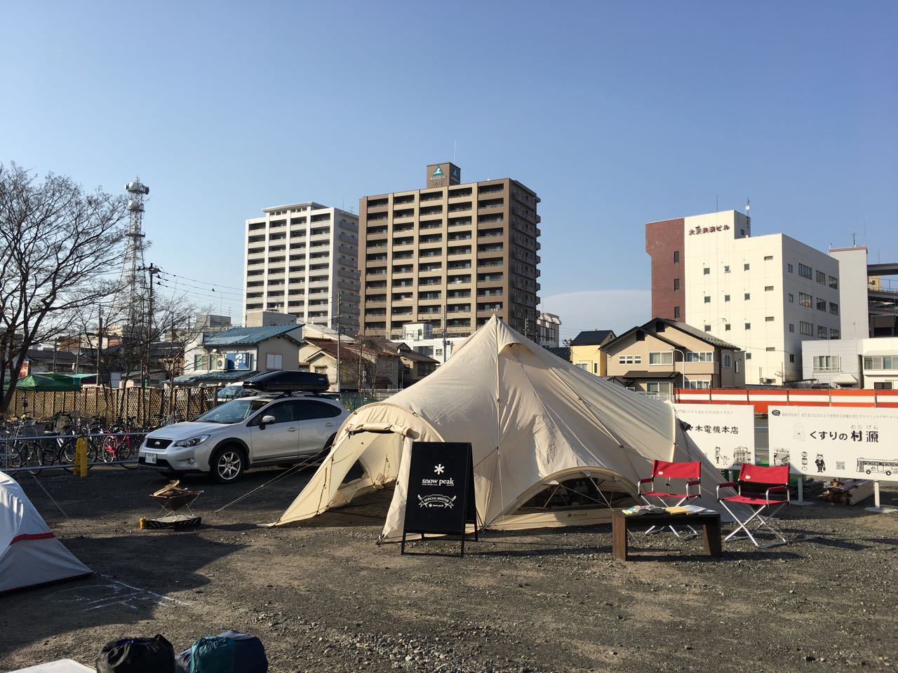 先週末は、盛岡バスセンター跡地「SIDE-B」にて、キャンプイベント「Camp-B」。盛岡の中心部の空き地に、まるでキャンプ場のようにテントを張ってキャンプをしちゃおうという企画。SIDE-Bにテントを張る区画を8区画ほど設けて希望者にご参加いただきました。アウトドアブラントの「snow peak」さんにもご協力をいただき、1区画はテントごとレンタルして手ぶらでキャンプに来れる区画も用意。