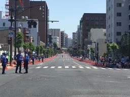 で、図らずも・・・今日は日中に時間が空いたので、せっかくだから街の様子をチラ見してみようかなと、パレードが始まる時間の前に市街地をランニング〜。すると・・・このくらいのエリアがホコ天って、圧巻!車が全くない市街って、なんか不思議な光景でした。マラソン大会気分で車道のど真ん中走ってみたりとか(笑)。生活にはやや支障がありましたが、こういうのが体験できるのも6年に一度ということで、それもまあいいか〜と。