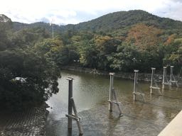 五十鈴川を渡り、五十鈴川のお水でお清め。