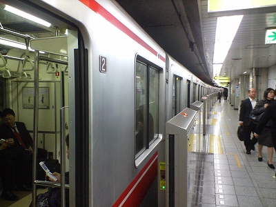 新幹線を降りてから、丸ノ内線に乗り換え。最近では、転落防止のために、丸の内線のホームにも開閉式の柵が出来ました。私がよく使う半蔵門線では、まだ柵がないので、ホームを移動するときなどは、少し警戒しながら歩いています。なんだか悲しいことではありますがね・・・。
