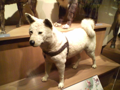時間があったので、特別展だけではなく常設展も見てきました。皆さん、知っていました?・・・科学博物館に忠犬ハチ公の剥製があることを! なぜか、秋田犬のサンプルみたいに置いてあるんですよね。「秋田犬(ハチ)」って書いてありました~(笑)。老犬なんでしょうけど、結構可愛いかったです。