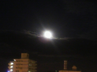 十五夜を見逃して、残念~と思いつつ、「完璧」な十五夜よりも、ちょっと欠けた十六夜の方が親しみが沸くような気がします。そんでもって、写真を撮ってみたのですが、ただの光になってます・・・。
