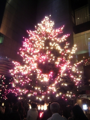 有名なミキモト前のクリスマスツリーは、昨年は青色のLEDでしたが、今年は赤でした~。