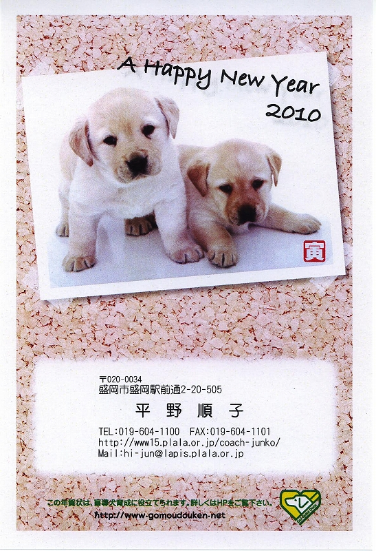 今年は、盲導犬協会のチャリティー年賀状にしてみました。あれ、戌年だっけ? 寅年なのに・・・犬? ・・・みたいな(笑)。まあ、犬好きなので、お許しを。