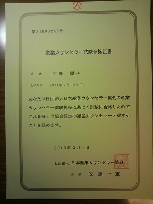 ようやく来ました!合格証書が~!