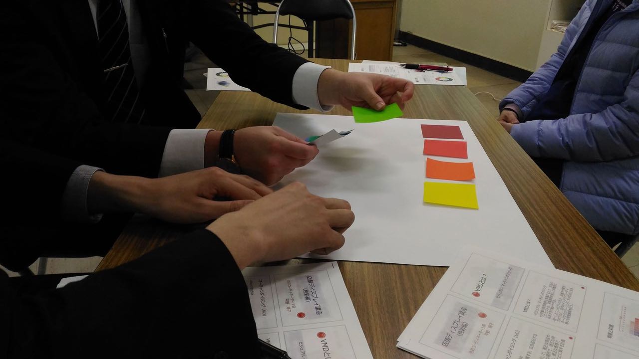 先日、いつも関わっている商店街の青年部で、カラー関係の講座をさせていただきました〜。私は店舗ディスプレイの専門ではありませんが、色の特徴や効果を店舗ディスプレイに活かしていただくという主旨で。カラーの勉強をして「色彩コーディネーター」の資格を取ったのが、こんな形で活きるとは・・・(笑)。