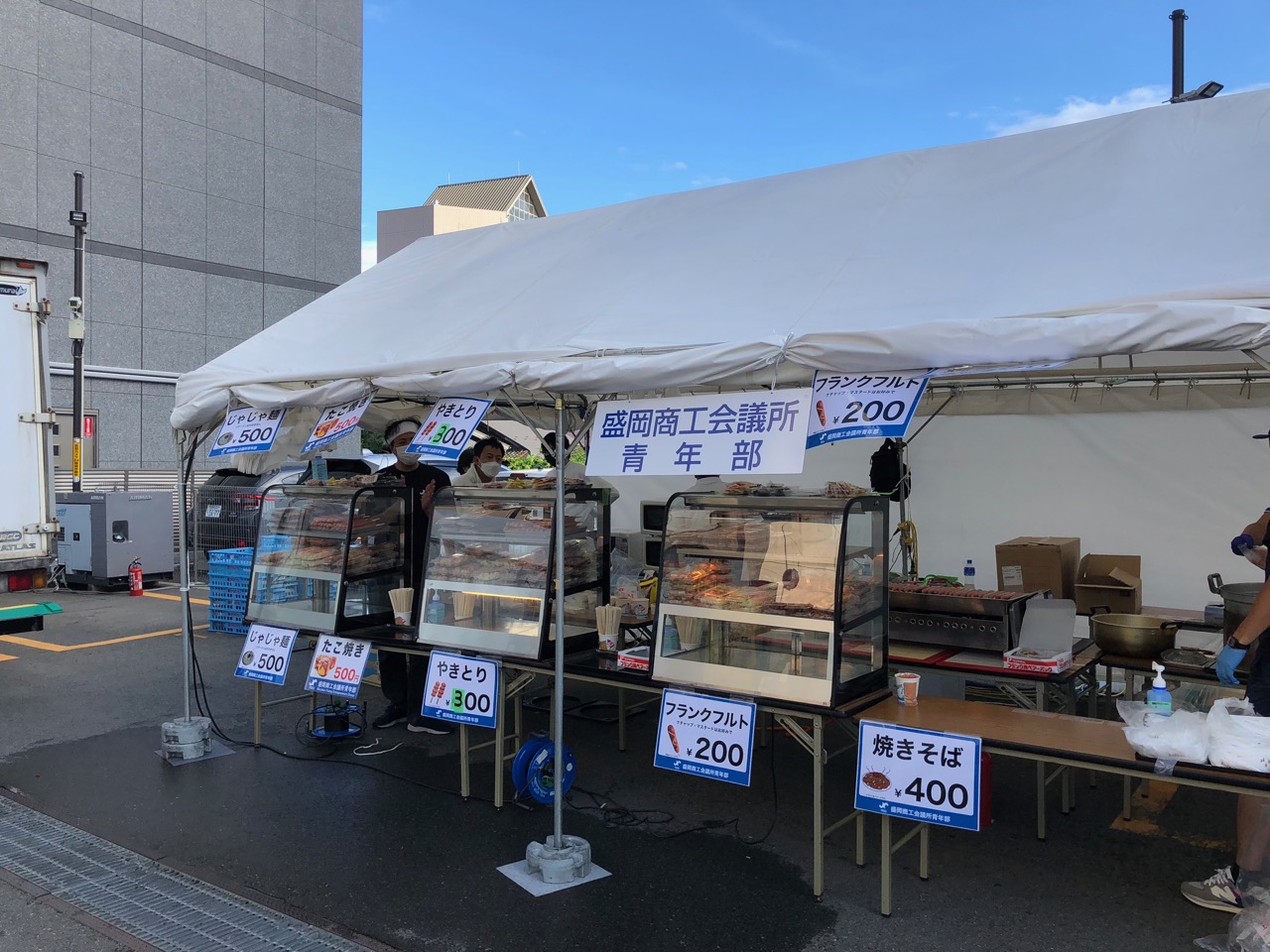 私はというと・・・。盛岡青年会議所の現役メンバーだったときは、4日間、毎日、太鼓を叩いてたけど、卒業して、盛岡商工会議所青年部に入ってからは、沿道で屋台を出してます。太鼓を叩きたいな〜って気持ちもあるけれど、大音量の太鼓を全身で感じながら「いらっしゃいませ〜」って売り子をするのも悪くなかったり。今年は会長をしているので、前面には出ずに全体を見てたけど〜。あいにく今年は、実行委員会の方針で沿道ではアルコール出せないことになっていて、屋台の利益的には厳しい運営になっちゃったけど、メンバーも賑やかに楽しそうにしてたし、無理にでも出店して良かったです。