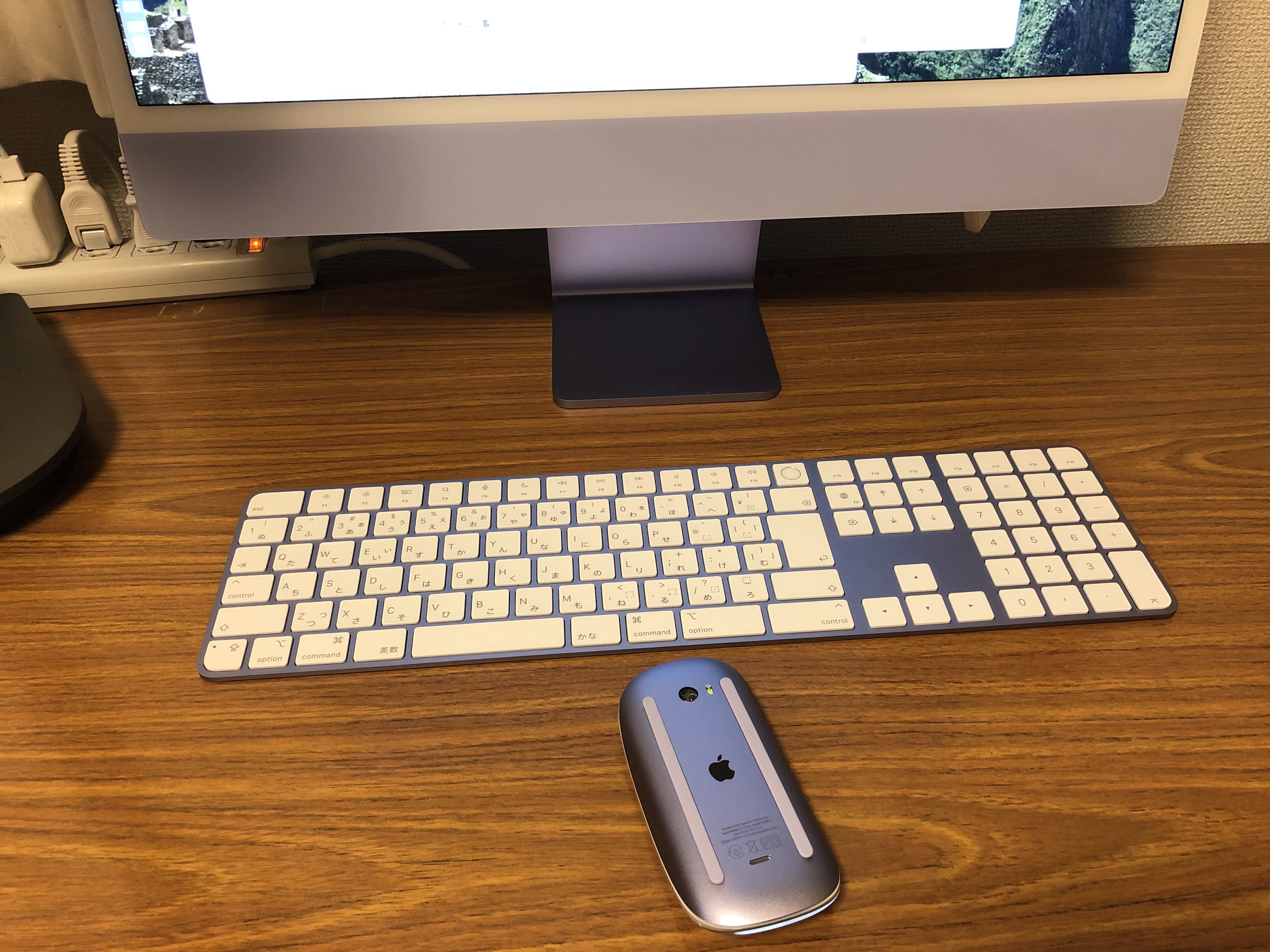 本体がパープルなのはわかっていましたが、なんと!キーボードやマウスまでパープルじゃあないですか〜。予想以上のパープル感に、さらに気分上昇。